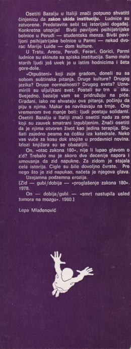 Izabrani spisi Franka Bazalje od 1968.-1980. izloženi kronološkim redom od psihijatrijskog iskustva u Gorici do zakona 180.