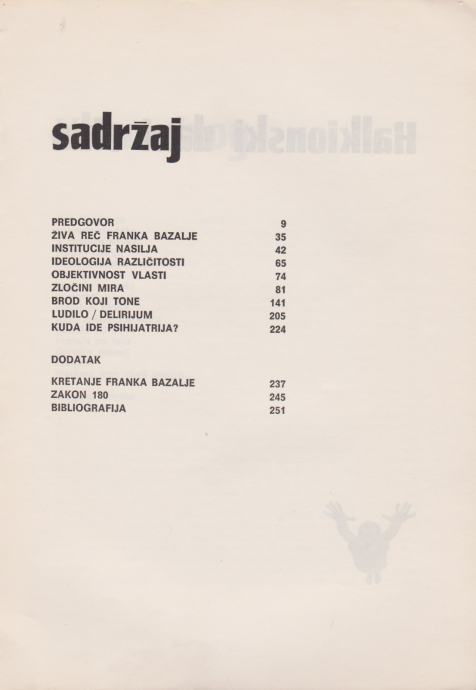 NEGACIJA INSTITUCIJE, corpus Franka Bazalje (Franco Basaglia), Vidici broj 5, Beograd 1981.