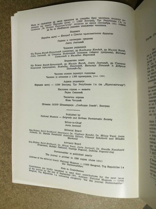 Nakladnik: Narodni muzej – Beograd, Srpsko numizmatičko društvo