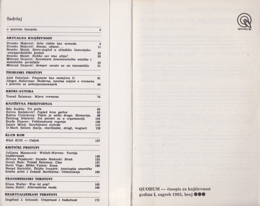 Quorum, broj 3/1985., Zagreb 1985.