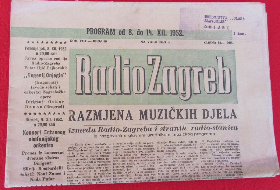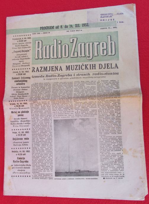 RADIO ZAGREB - časopis novine br. 50 iz 1952.g.