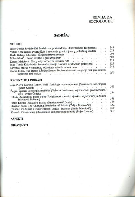 Revija za sociologiju (tri broja)