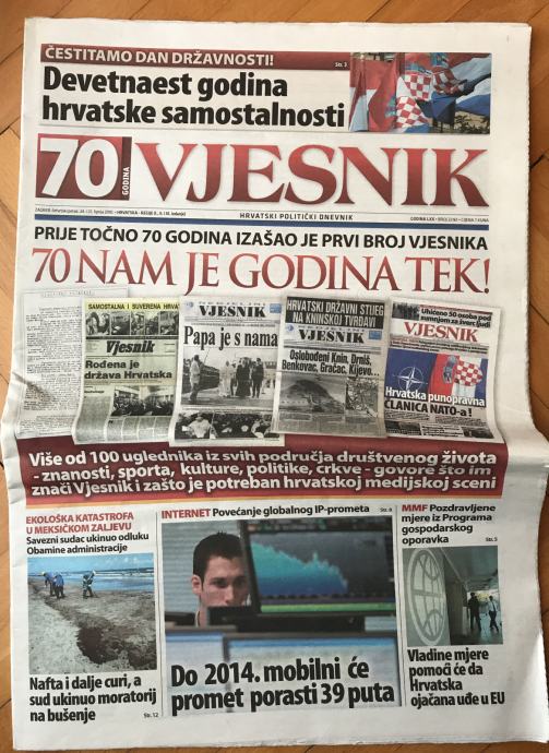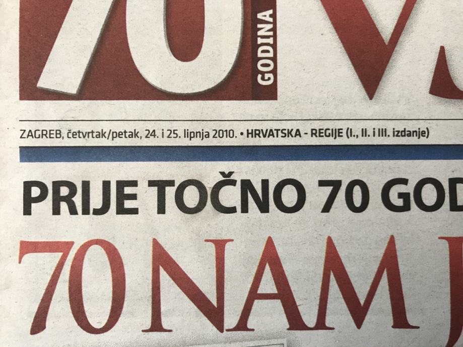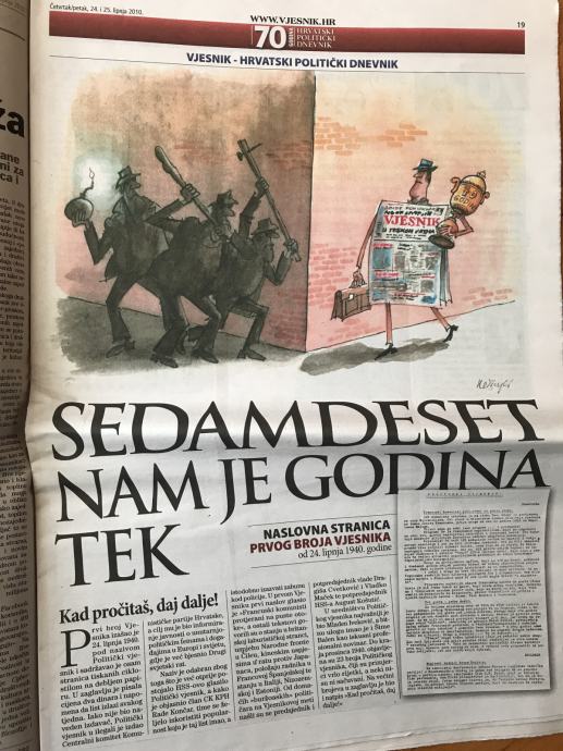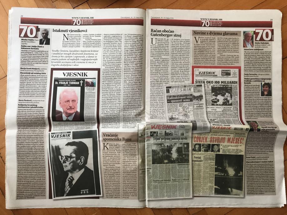 3 specijalna novinska izdanja: 70g.Vjesnika+60g.Slobodne+20g.Jutarnjeg