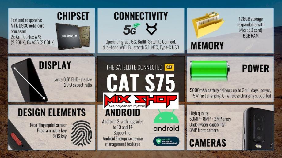 #Caterpillar CAT S75 5G 128GB Caterpilar tvrdi neraskidiv mobitel, otporan na vodu udarce prašinu neprobojan katapilar katerpilar ds duos dual sim