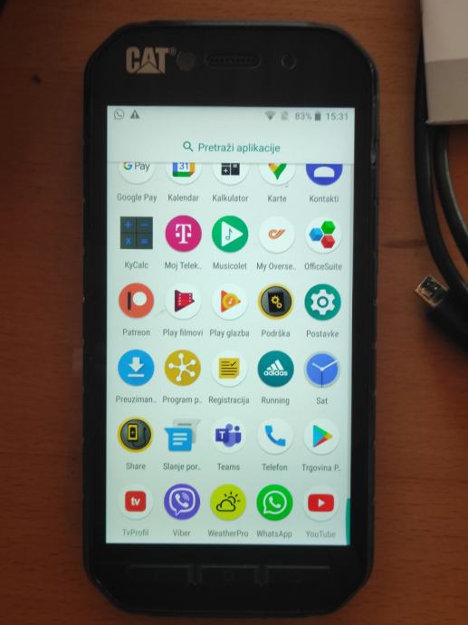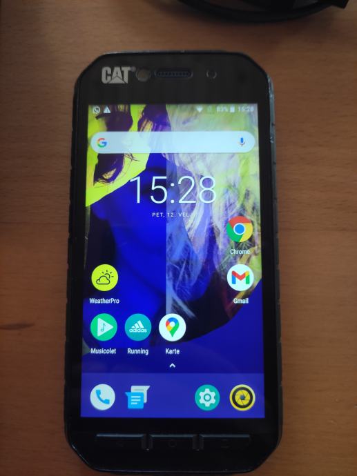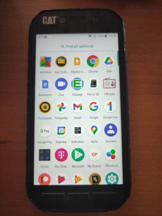 Sve radi bez greške. Odlična baterija. Vodootporan i otporan na ogrebotine. Dual sim. Sa mobitelom dolazi punjač, kabel za povezivanje kada ga koristite za punjenje drugog mobitela, uputstva, kutija. Sve je ispravno. Mala crtica na ekranu. Praktički nevidljiva dok mobitel radi (zadnja slika).