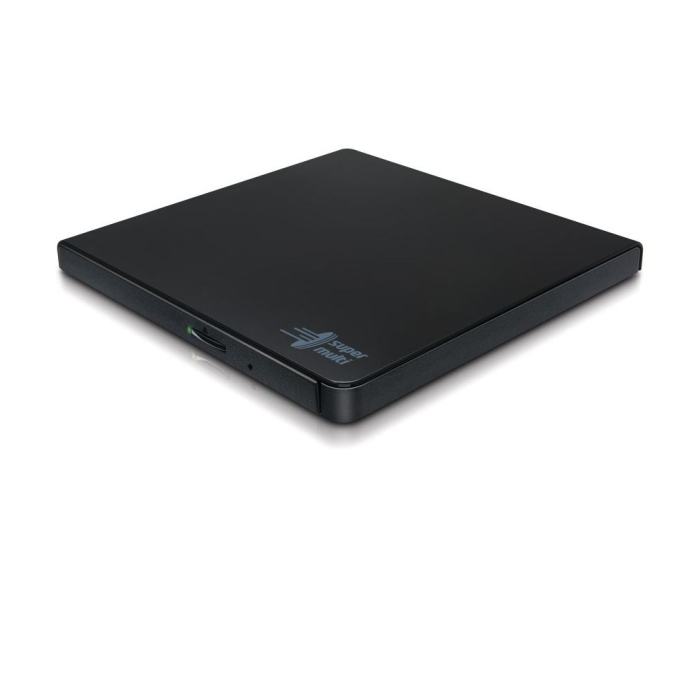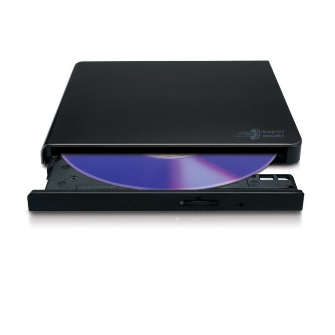 Hitachi-LG DVD-RW prijenosni optički uređaj model GP57ES40, pisač i čitač CD/DWD. Eksterni tanki (slim) uređaj u crnom kućištu koji se može spojiti na različite uređaje.