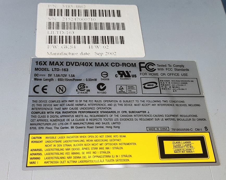 Retro DVD ROM Liteon 16x IDE PATA P-ATA Lite ON