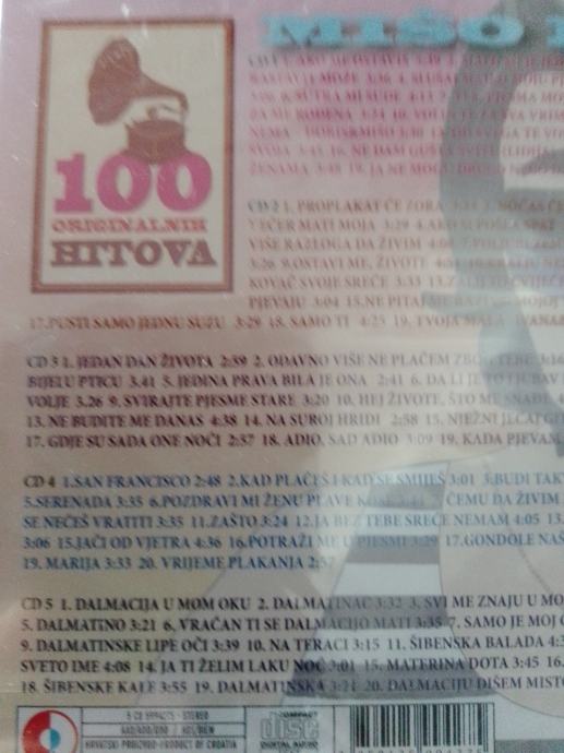 ne korišteno,neotpakovano.100 originalnih hitova na 5CD-ova ,šaljem preporučeno uplatom na moj tekući račun+ troškovi poštarine.