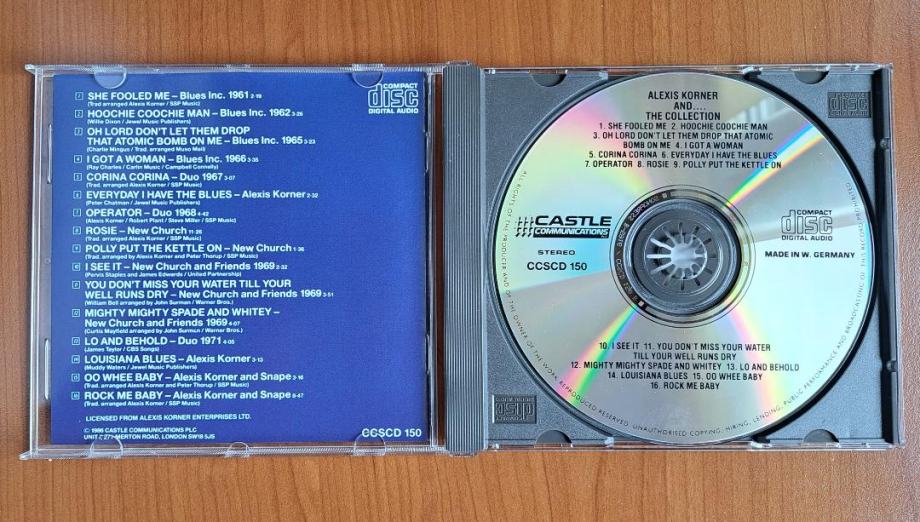 ALEXIS KORNER je bio britanski blues glazbenik i radijski voditelj, „utemeljitelj britanskog bluesa“ (Wikipedia). Rođen u Parizu 1928. djetnjstvo provodi u Francuskoj, Švicarskoj i sjevernoj Africi a 1940. seli u Englesku. Nakon rata, uz gitaru i klavir te svira u Chris Barber Jazz Bandu gdje upoznaje blues harmonikaša Cyrila Daviesa sa kojim osniva, kasnije vrlo utjecajni, London Blues Barrelhouse Club. Snimili su prvu zajedničku ploču 1957.Uskoro snima svoju prvu samostalnu ploču. Savladao je i sviranje mandoline a utjecao je na mlade glazbenike da dođu svirati u Club kojeg su osnovali on i Davies. Osnovali su i Blues Incorporated (1961.) u kojem su povezali glazbenike , zaljubljenike u električni blues i R&B. Članovi su bili, u različito vrijeme Charli Wats, Jack Bruce, Ginger Baker. Kasnije su povremeno nastupali Mick Jagger, Keith Richards, Brian Jones,Rod Stewart, John Mayall i Jimmy Page. Cyril Davies napušta grupu 1962. Alexis nastavlja svirati do 1966. kad je njihova zvjezdana postava otišla osnivati vlastite bendove, poput Rolling Stonesa i Creama, Zaslužan je i za nastanak grupe Free a spojio je i J Kao radio voditelj i muzićki novinar bio je poznat i kao kritičar.Umro je 1.1.1984. u dobi od 55 godina. CD je kompilacija R&B studijskih i live snimaka nastalih u razdoblju od 1961. do 1972. Izdanje je Castle Communications, iz serije 'The Collector Series' iz 1986. pROIZVEDEN U nJEMAČKOJ