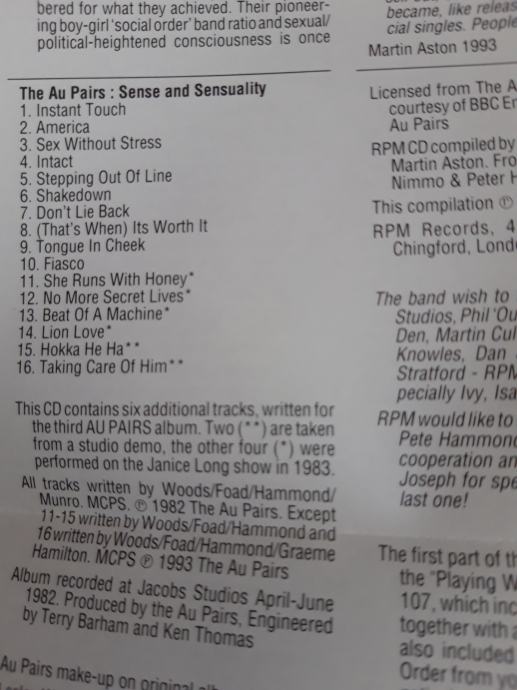Au Pairs - Sense & Sensuality,....CD (+ 6 bonustrack)