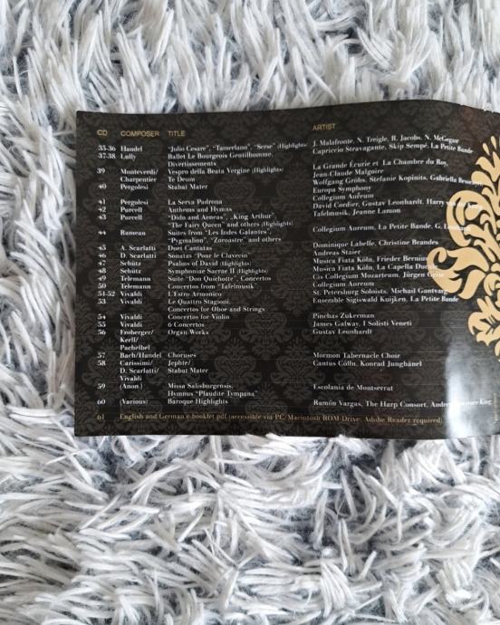Sjajna kolekcija barokne glazbe na čak 60 CD-a! Limitirano izdanje, savršeno očuvano.