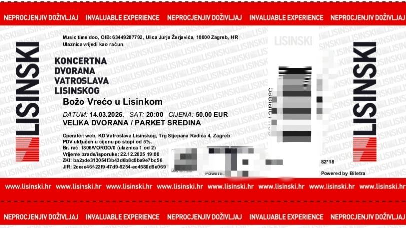 Prodajem dvije karte za zagrebački koncert Bože Vreće, Lisinski, sredina, treći red. Cijena za obje karte je 90€.