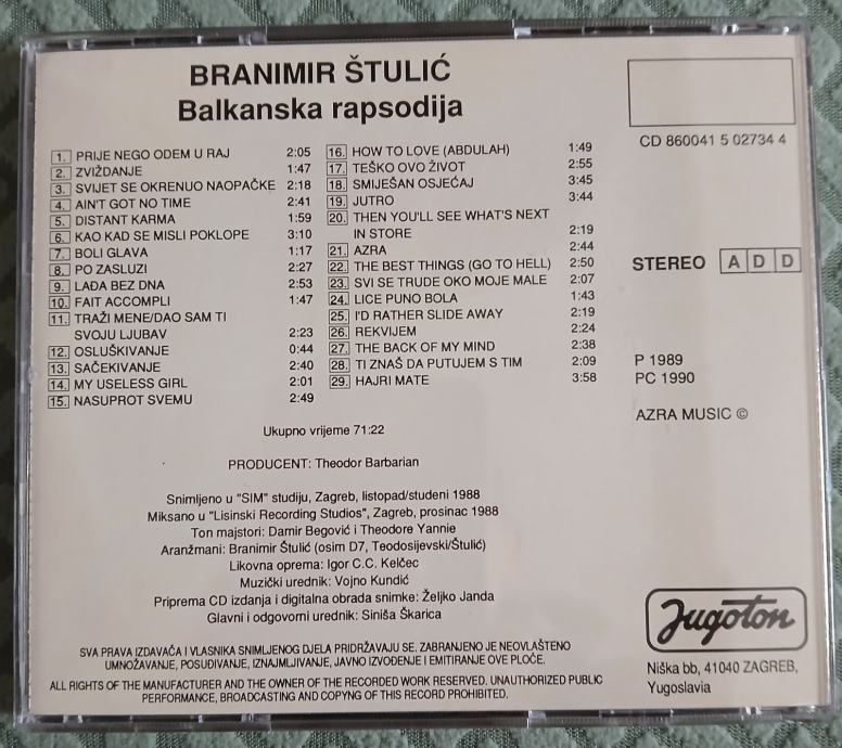 Branimir Štulić - Balkanska Rapsodija,...CD,Rijetko,Jugoton