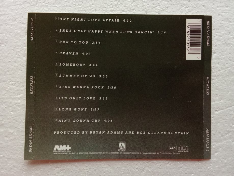 Bryan Adams - Reckless, glazbeni CD