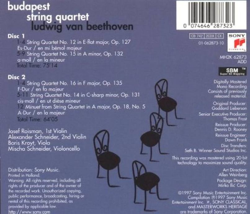 BUDAPEST QUARTET - BEETHOVEN QUARTETS Opp. 127, 131, 132 & 135 2CD DP #SX5