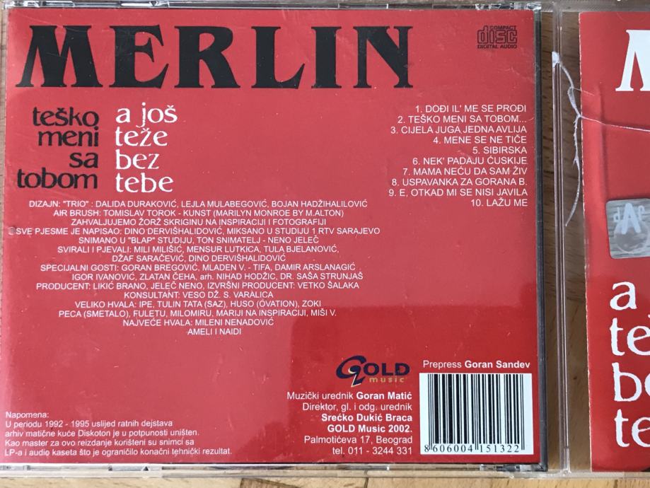 CD iz 90-ih/ Merlin - Teško meni sa tobom, a još teže bez tebe (1986.)