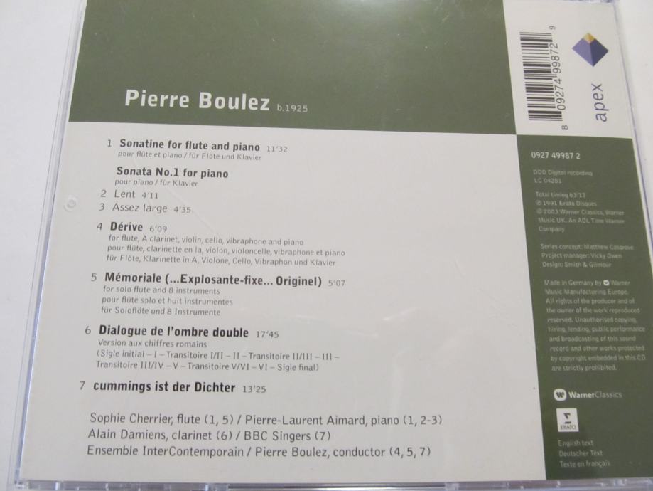 Skladbe pod brojem 4, 5 i 7 dirigira osobno Pierre Boulez.