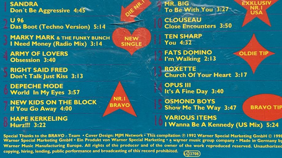 CD Bravo Hits Vol.1 (1992.)16hitova+12str knjižica s tekstovima hitova
