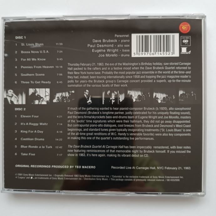 THE DAVE BRUBECK QUARTET - AT CARNEGIE HALL (COLUMBIA) 2CD