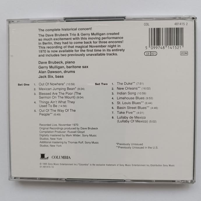 DAVE BRUBECK TRIO & GERRY MULLIGAN - LIVE AT THE BERLIN PHILHARMONIE (COLUMBIA) 2CD