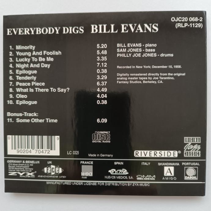 BILL EVANS TRIO - EVERYBODY DIGS BILL EVANS (RIVERSIDE)