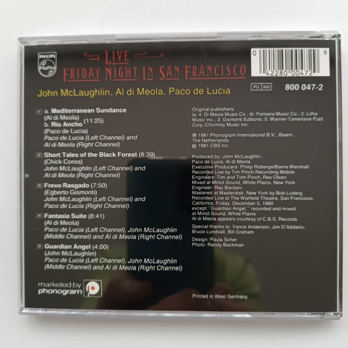 JOHN MCLAUGHLIN/AL DI MEOLA/PACO DE LUCIA - FRIDAY NIGHT IN SAN FRANCISCO (PHILIPS)