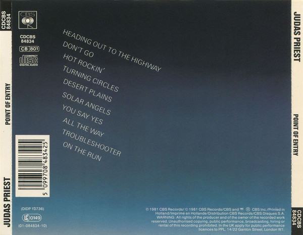 First pressing for Europe market. Manufactured by CBS/SONY Inc. in Japan.