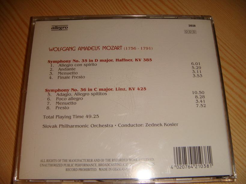 Prodajem CD W.A.Mozart, simfonija 35,36.