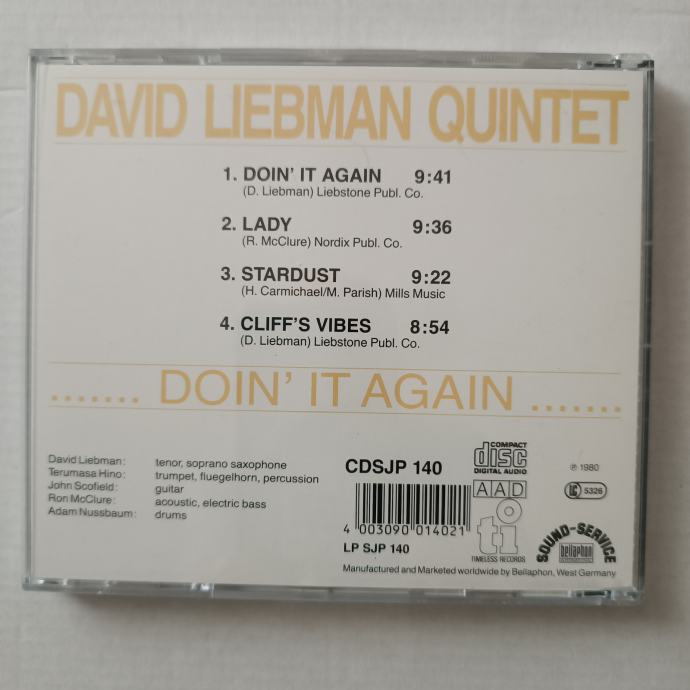 DAVID LIEBMAN QUINTET - DOIN IT AGAIN (TIMELESS)