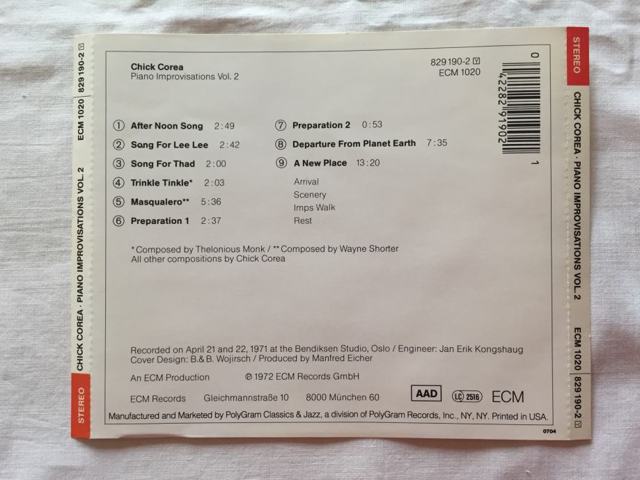 Chick Corea – Piano Improvisations Vol. 2, ECM Records, S. A. D.