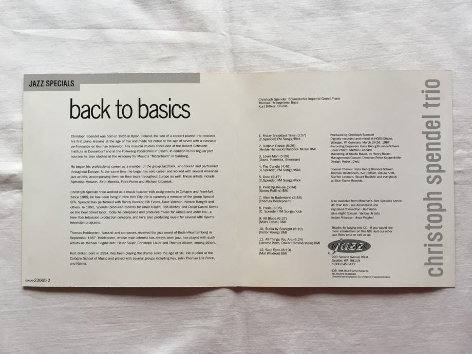 Christoph Spendel Trio – Back To Basics, Miramar 1995., S. A. D.