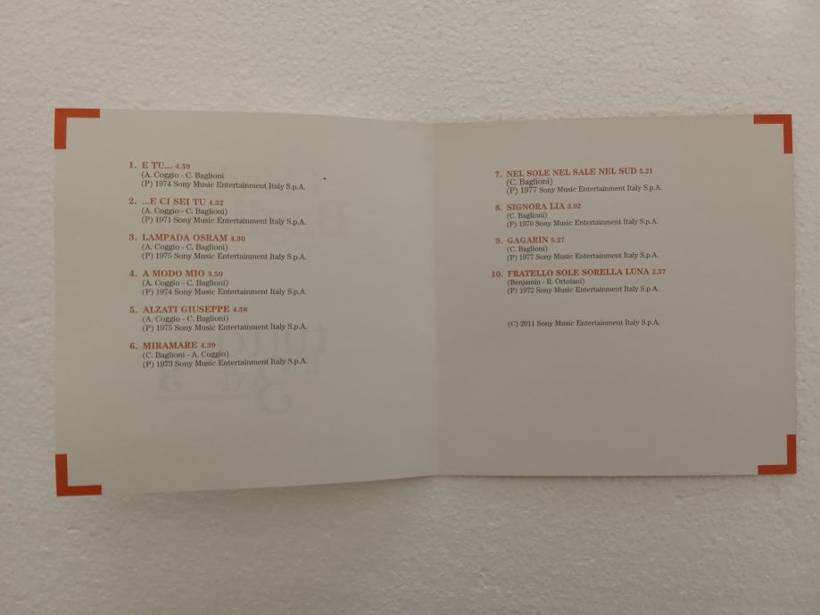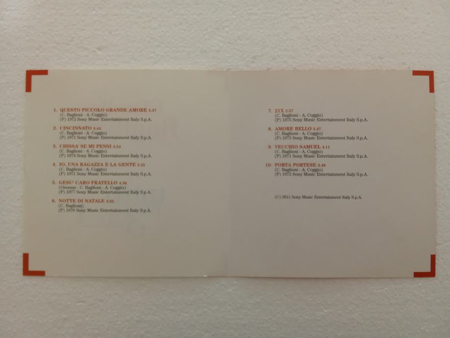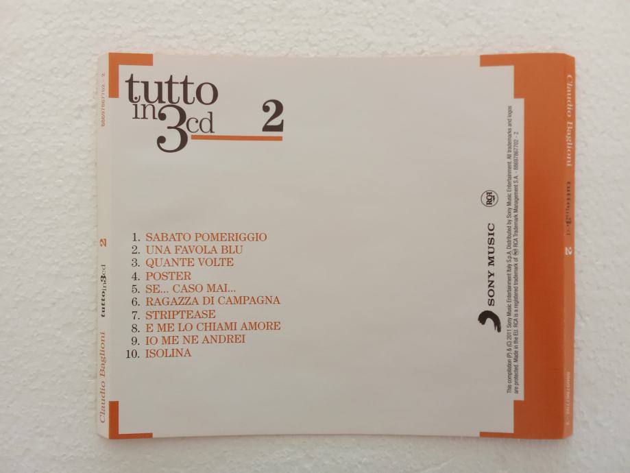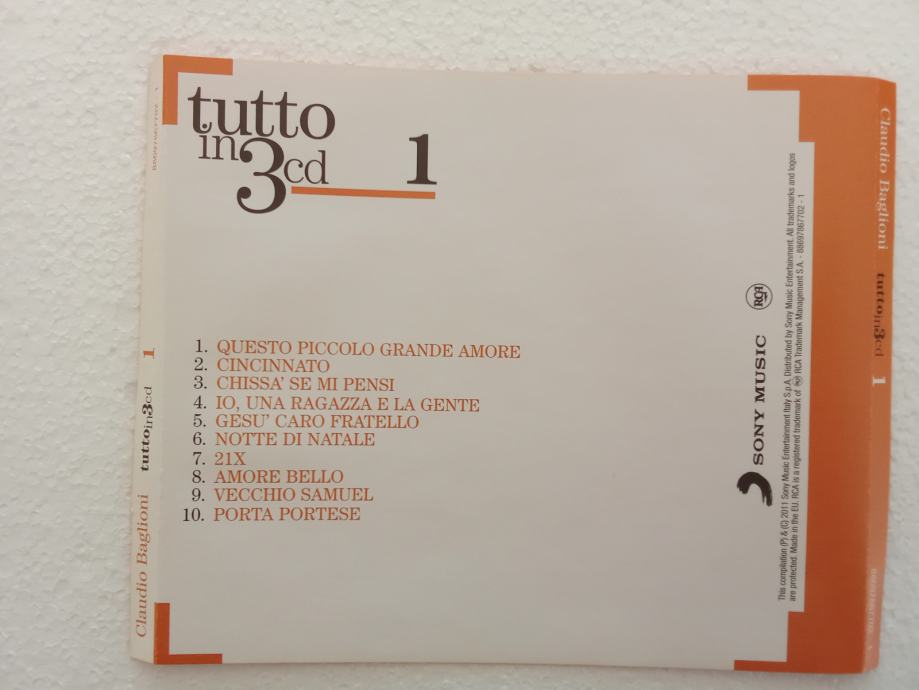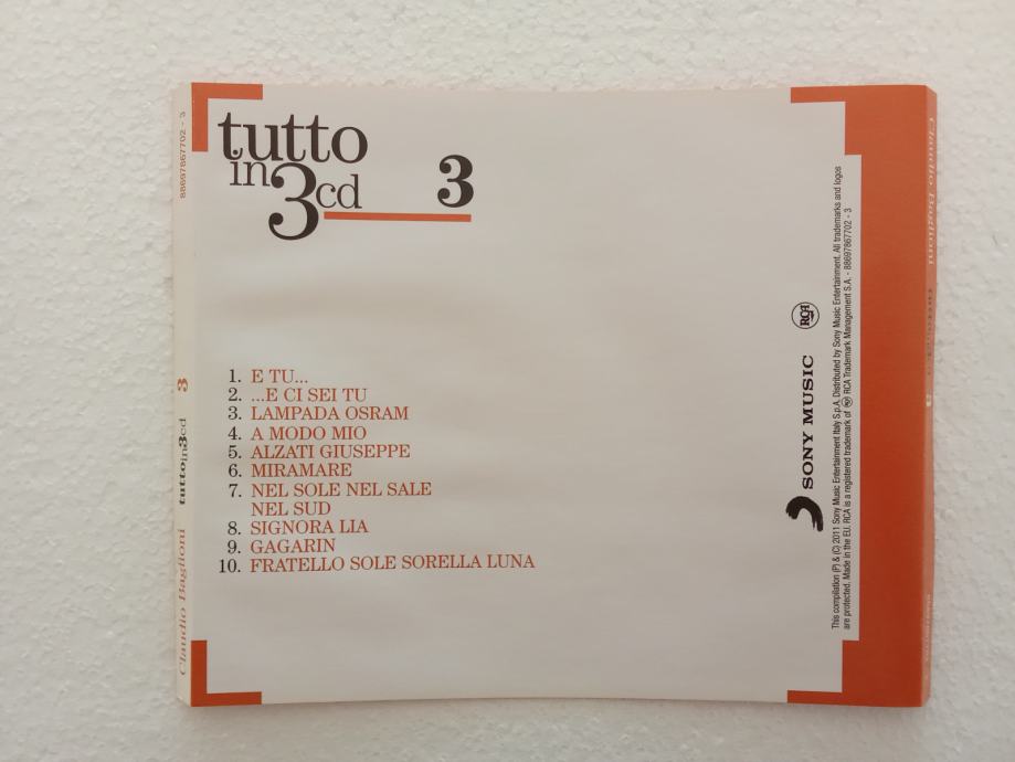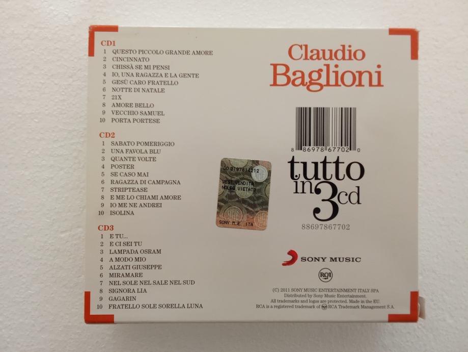 Claudio Baglioni – Tutto In 3 CD, tri CDa, RCA/Sony Music 2011.