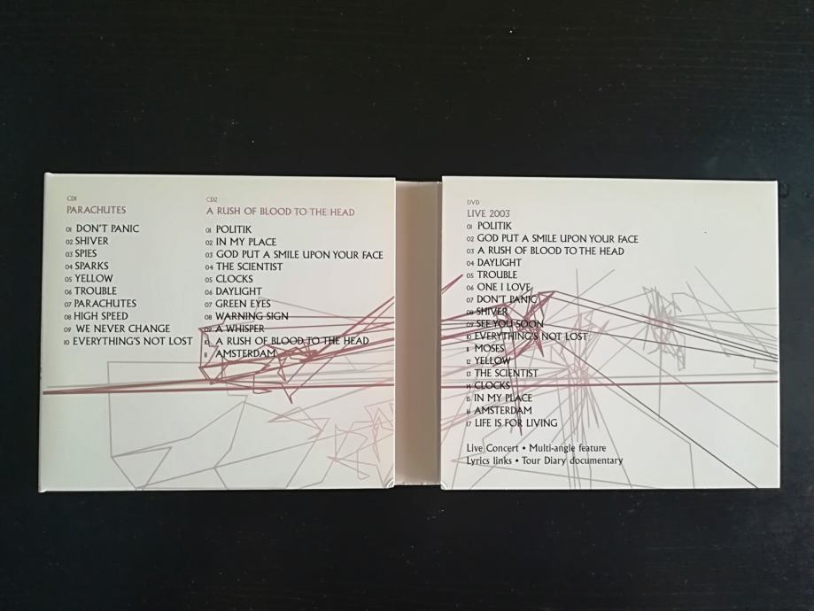 Coldplay box set sa 2 cd-a; ''PARACHUTES'' i ''A RUSH OF BLOOD TO THE HEAD'' te LIVE 2003 DVD.