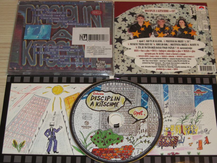 Prodam tri nova cd-ja grupe Disciplin A Kitchme (odnosno Disciplina Kičme). Ide za albume "Heavy Bass Blues", "Uf!" i "Opet.".