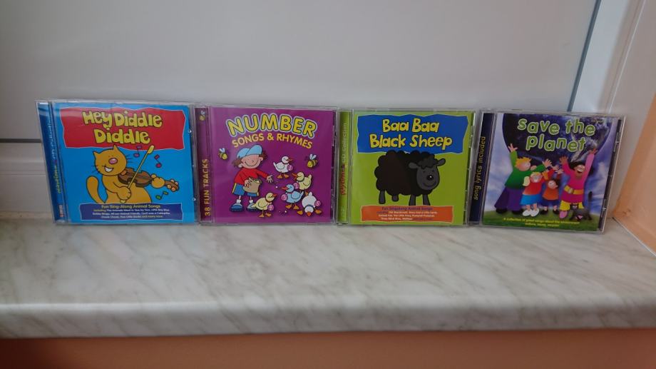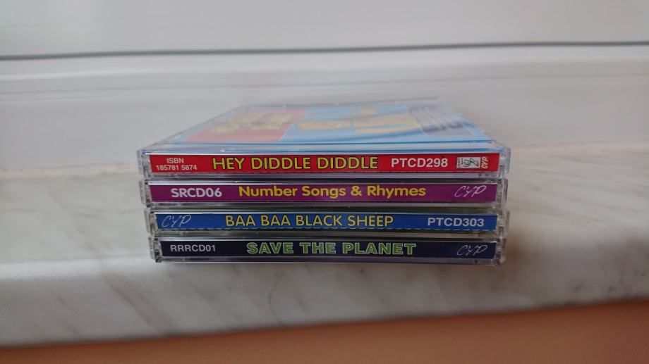 Glazbeni cdi za učenje engleskog za djecu, sa pjesmama na engleskom jeziku; komplet od 4 komada, prodaju se kao komplet.