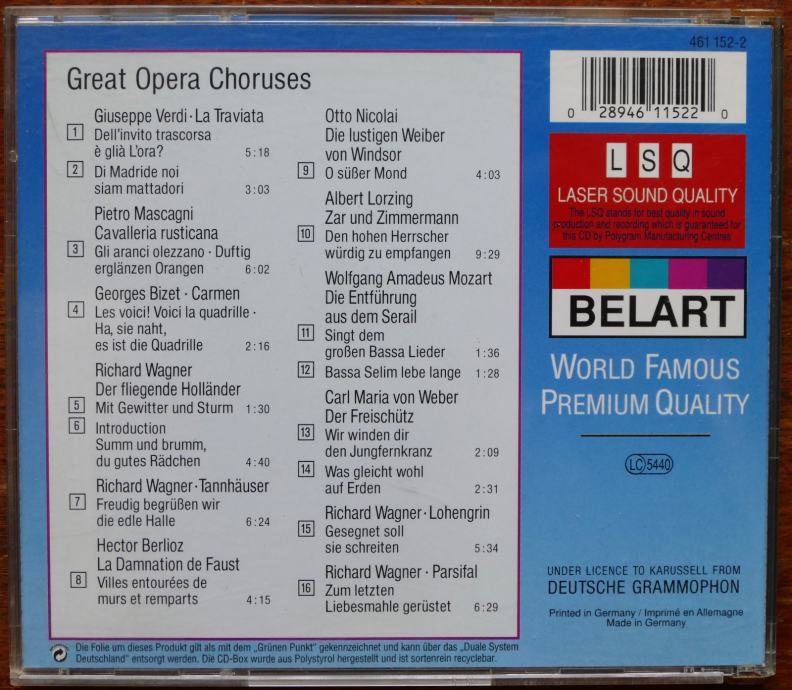 Prodajem originalni CD “Great Opera Choruses” u izdanju Belart / Deutsche Grammophon.