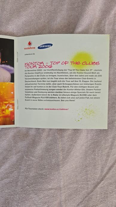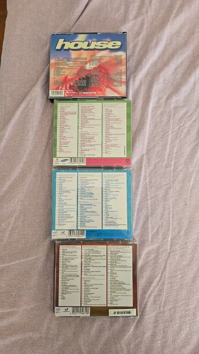 Prodajem kolekciju house i techno glazbe na CD-ovima. Radi se o ukupno 4 box seta, svaki sa po 3 CD-a, što znači 12 CD-ova ukupno. U ponudi su Kontor Top of the Clubs izdanja (brojevi 31, 32 i 33) te House kompilacija. Sva izdanja su kao nova, samo jednom poslusana.Njemacko izdanje. Ako se kupi pojedinačno svaki Kontor je 20 €, a House 15 €. A za sva 4 boxa dodatni popust i cijena je 50 €.