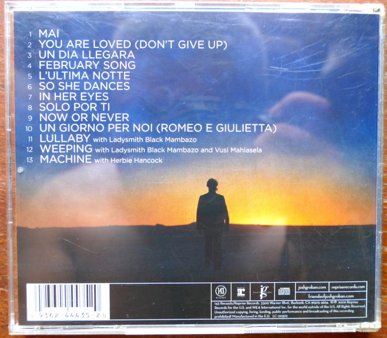 11 Josh Groban With Ladysmith Black Mambazo– Lullaby
