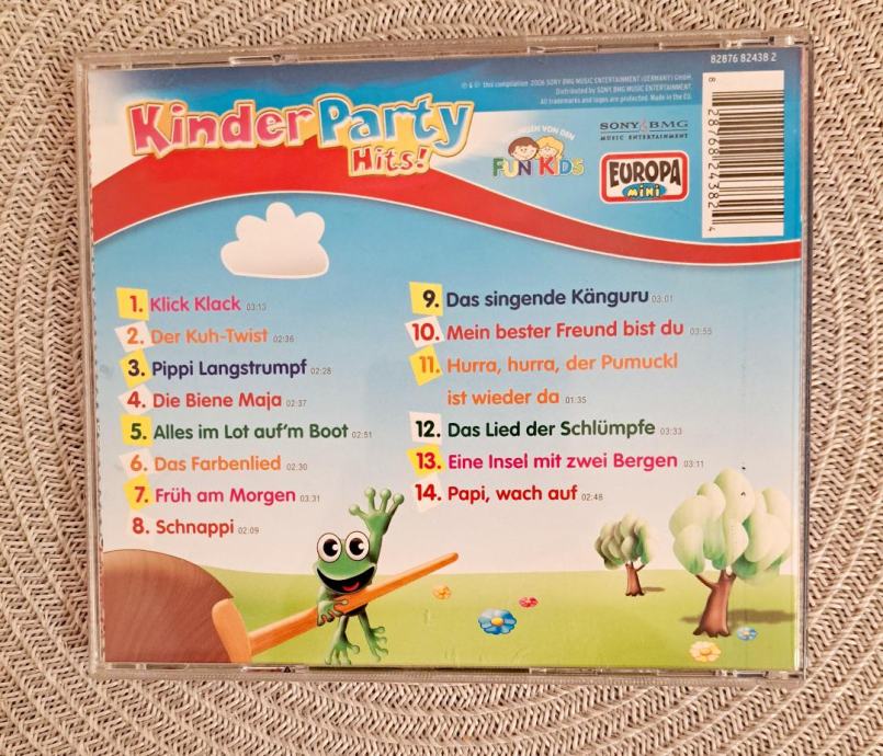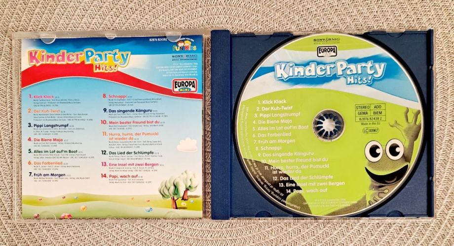 Kinder Party je kompilacija dječjih pjesama koja sadrži 14 vokalnih skladbi raznih autora njemačkog govornog područja. Izdavač je Sony BMG, Njemačka, 2006. CD je u mint stanju. Zaštitna kutija je u 4/5 stanju.