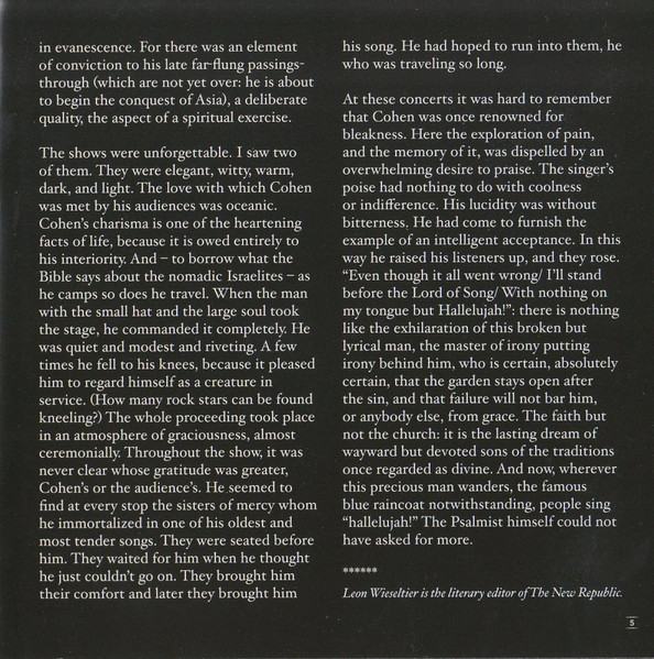 LEONARD COHEN – Songs From The Road /NOVO/