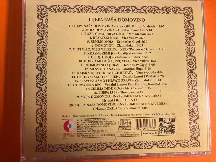 Lijepa Naša Domovina-20 domoljubnih pjesama - novo, neotvoreno u celofanu.