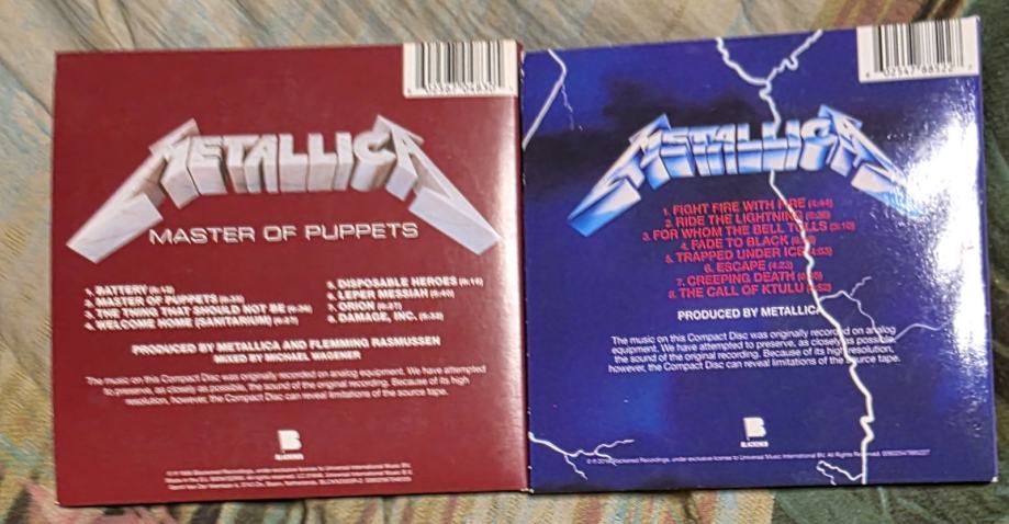 Prodajem potpuno nove glazbene CD-e reizdanja legendarnih Metallica albuma "Master of Puppets" i "Ride the Lightning" i "Death Magnetic".