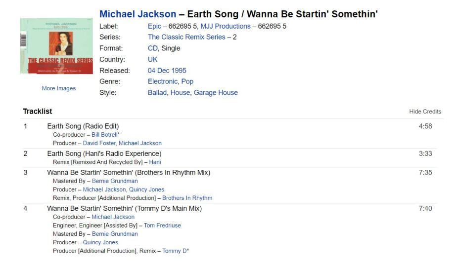 Michael Jackson – Earth Song / Wanna Be Startin' Somethin'