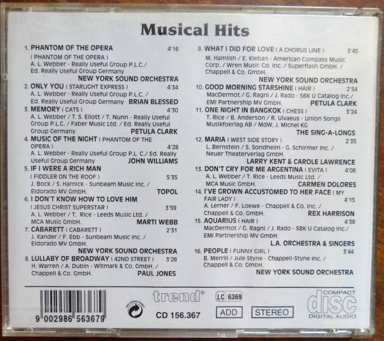 16 naslova iz poznatih mjuzikla.