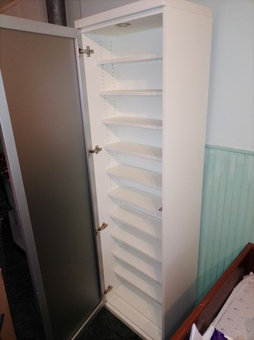 Prodajem odlično očuvan ormar predviđen za čuvanje CDa, kapaciteta 550 standardnih kutijica. Vanjske mjere su: visina 190, širina 55.5 i dubina zajedno sa vratima 40 cm, a bez vrata 37 cm. Na gornjoj dasci je ugrađena standardna žarulja.