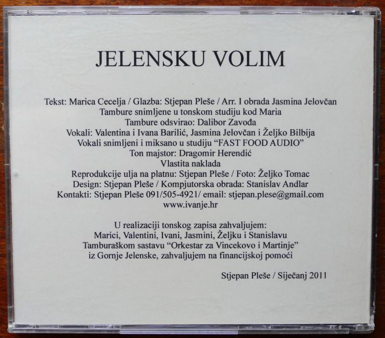 Promotivni CD „Jelensku volim“, objavljen 2011. godine u vlastitoj nakladi, posvećen mjestu Gornja Jelenska i njegovim ljudima, običajima i glazbenoj tradiciji. Prikladno za kolekcionare, zaljubljenike u zavičajnu glazbu i kulturnu baštinu.