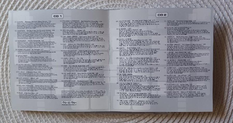 Njemaćki zabavni div izdavač je ove kompilacije izdate 2002 godine. CD je ostvaren u suradnji sa EMM (EMI Music Media). Kompilacija sadrži 39 pjesama podijeljenih u 2 cd-a. Izvode ih zvijezde njemačke strade ali i zvučana imena svjetske pop scene.CD je u mint stanju (kao nov), korišten jednom. Plastična kutija je u odličnom stanju.