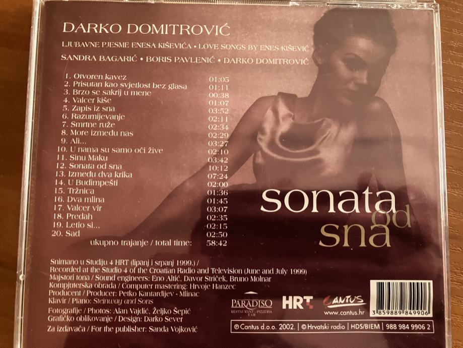 Sandra Bagarić • Boris Pavlenić • Darko Domitrović - Sonata Od Sna (Ljubavne Pjesme Enesa Kiševića • Love Songs By Enes Kišević)