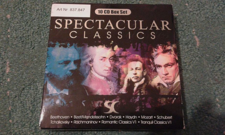 Prodajem box set od 10 CD-a klasične glazbe (set 3 iz cijele kolekcije). Vanjski omot minimalno oštećen (što se vidi na slikama) ali unutarnji omoti i CD-i odlično očuvani. Beethoven, Bizet/Mendelssohn, Dvorak, Haydn, Mozart, Rachmaninov, Schubert, Tchaikovsky, Romantic classics VI, Tranquil classics VI