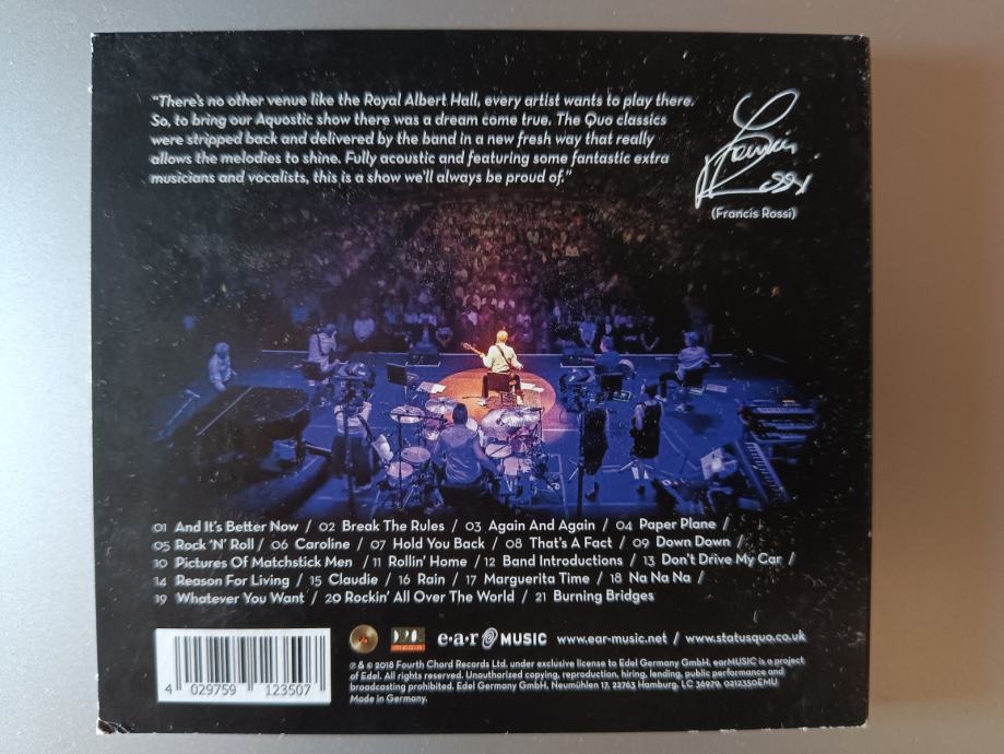 Prodajem cd STATUS QUO - Down Down & Dignified 2018 (live at Royal Albert Hall), digipak, stanje kao na slici.